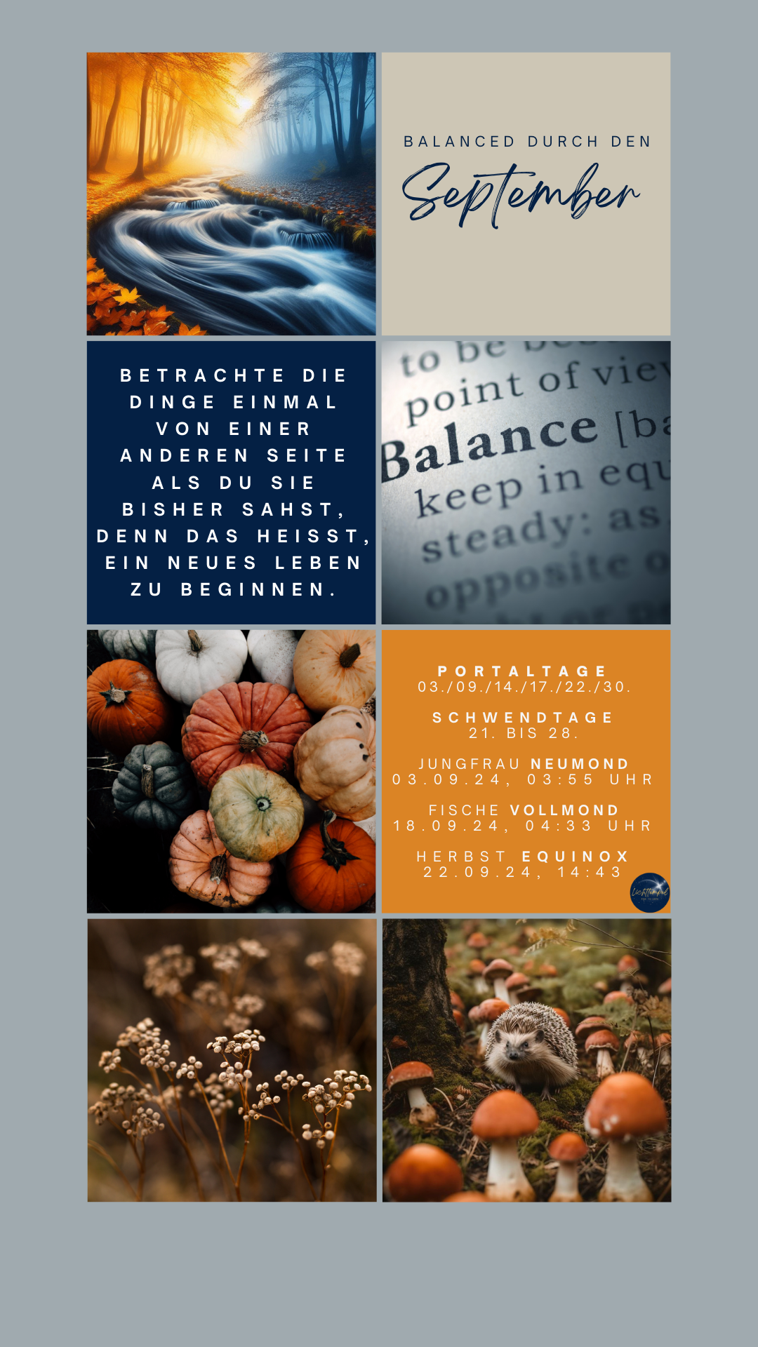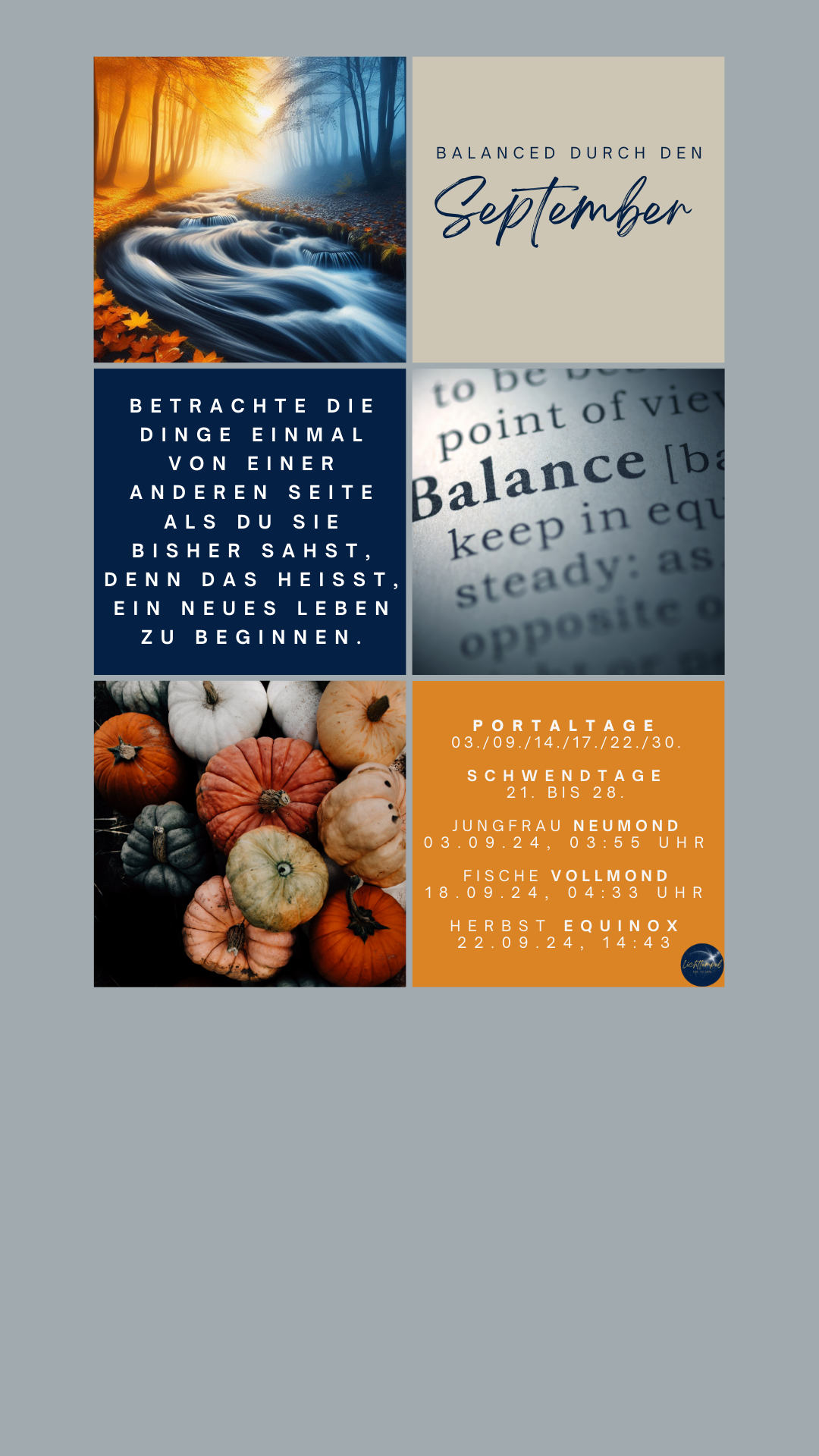 Dem Fische-Vollmond am 18.9. geht ein weiterer Portaltag voraus. Er hebt die Vollmond-Energien empor. Ein Zyklus nähert sich dem Ende und hier ist nicht nur der aktuelle Mondzyklus betroffen, sondern es ist die Woche des Herbst-Equinox, der Tag-und-Nachtgleiche am 22.9.! Tag und Nacht sind für einen Moment gleich lang, ehe die Nächte nun langsam wieder länger werden. Die Bedeutung dieses Equinox ist bemerkenswert, weil es nicht nur auf einen weiteren Portaltag fällt, sondern weil bereits am 21.9. bis hin zum 28.9. eine Schwendtag-Reihe ins Feld zieht - Energieumkehr as it´s best. Die Sonne zieht in die Waage - Gleichgewicht, Ausgleich, Diplomatie. Dies betrifft auch unsere Beziehungen. Denn mit einem Venus/Pluto-Quadrat für 2 Tage fühlen wir uns dazu bewegt, von einer einseitigen Bedürfniserfüllung eine Gleichberechtigung in unseren Beziehungen einzufordern.