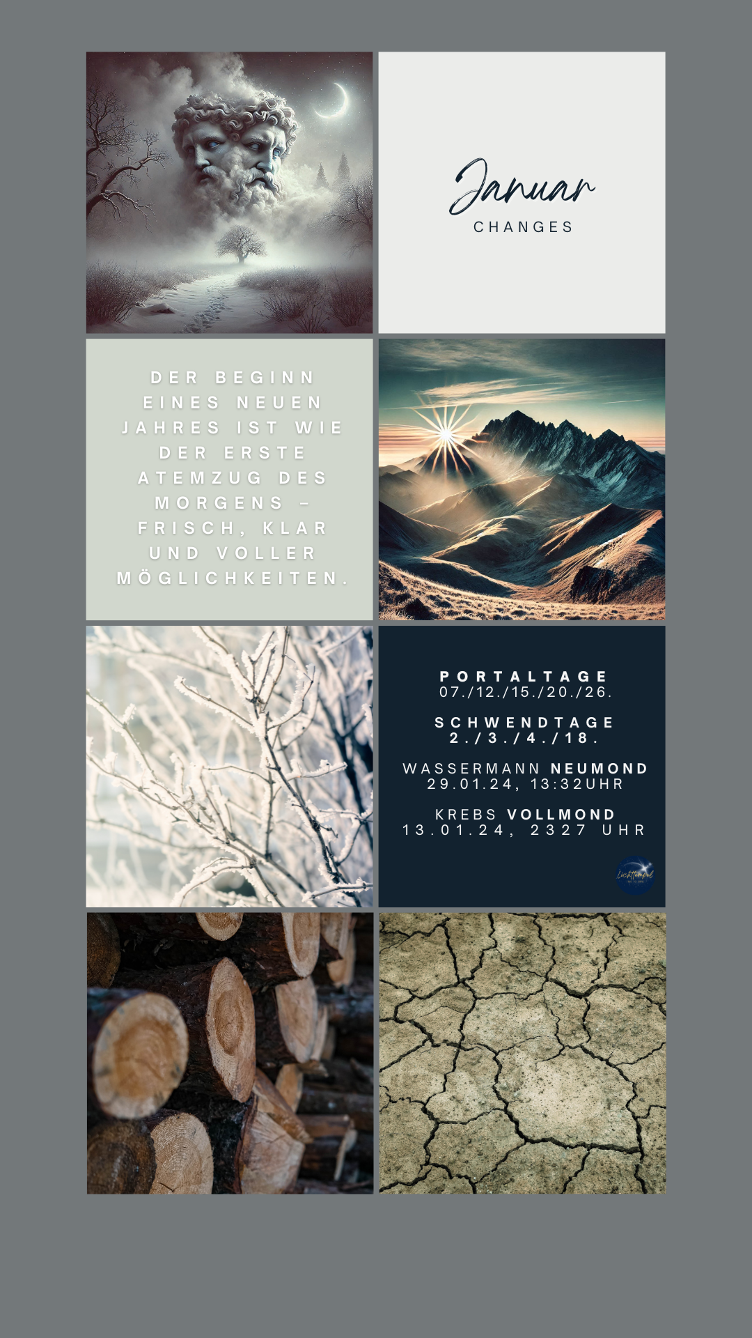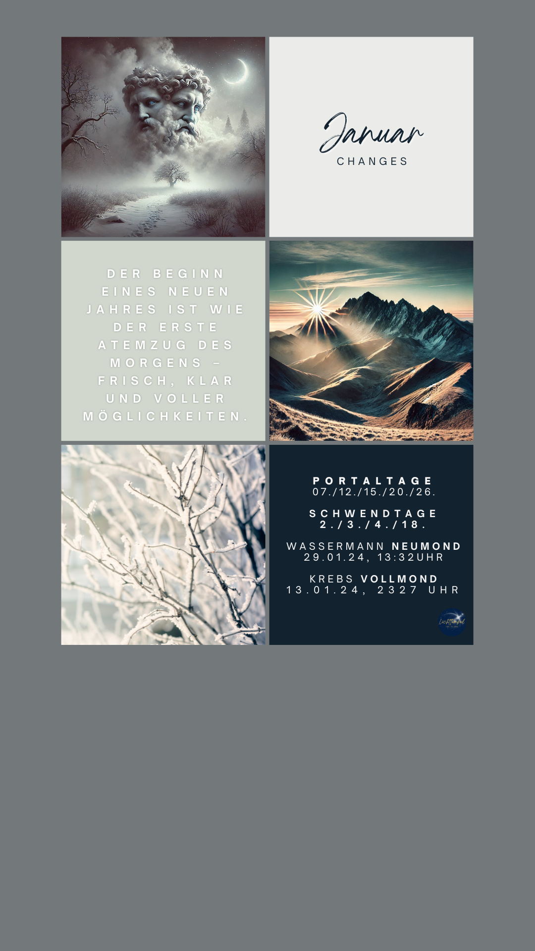Der Januar ist geprägt von Momenten, die alte Türen schließen, und neue öffnen. Wie kein anderer Monat symbolisiert er die Schwelle, den Übergang vom Alten in etwas Neues, lässt uns mit einem Auge in die Vergangenheit, und mit dem anderen in die Zukunft schauen. Wenn du deine Sperrnächte und auch die Rauhnächte gebührend zelebrieren konntest, hast du sicherlich das Vergangene gut abgeschlossen und deine Zukunft visioniert!? Ich konzentriere mich also lieber auf die Energie, die uns zur Verfügung steht.